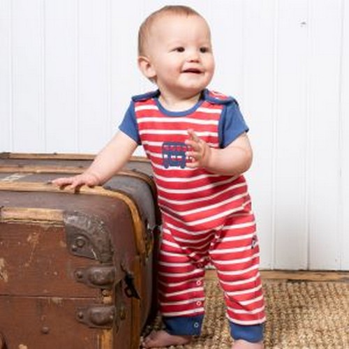 With a cute embroidered bus detail, these red stripe baby dungarees are so soft, comfy and versatile. Made from lovely organic cotton, they are the perfect choice for little crawlers, walkers or wrigglers!