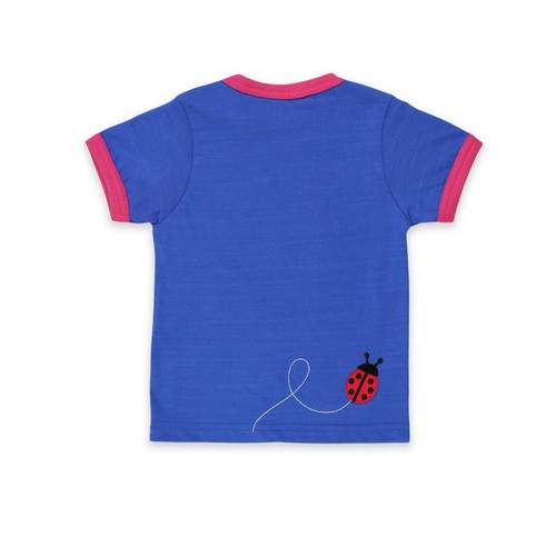 Spring is in the air with our soft applique organic cotton short-sleeved T-shirt. Our little bird has found the juiciest of apples – and it’s also taking the bee’s fancy! Cool blue with a summery pink trim, our smaller sizes come with neck poppers for fuss-free changing.