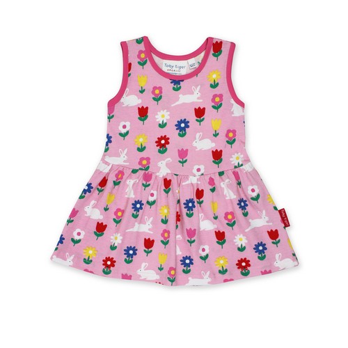 Ready to bunny hop? Little ones will love to spin and whirl in this spring-inspired organic twirl dress. And the fun doesn’t stop there: how many different bunnies and flowers in bloom can you spot?