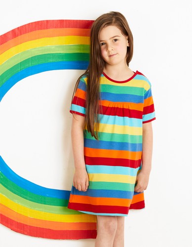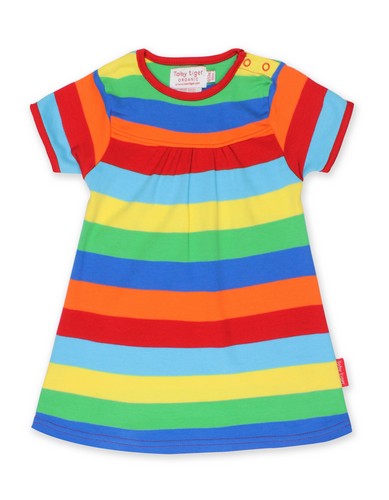 Our classic multi stripe in this gorgeous, easy-to-throw-on summery t-shirt dress! Perfect for those warm beach days or play in the garden, and the 100% certified organic cotton fabric means your little one will always be extra comfortable.