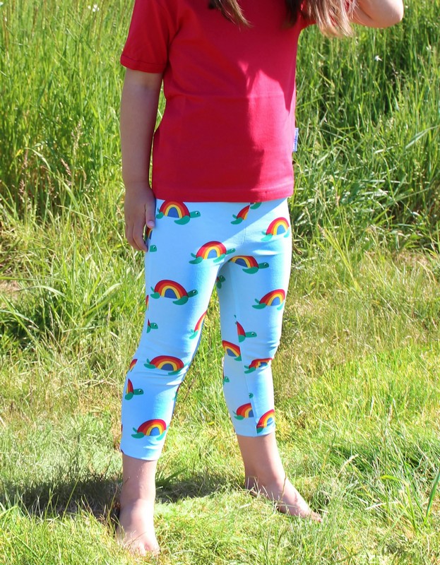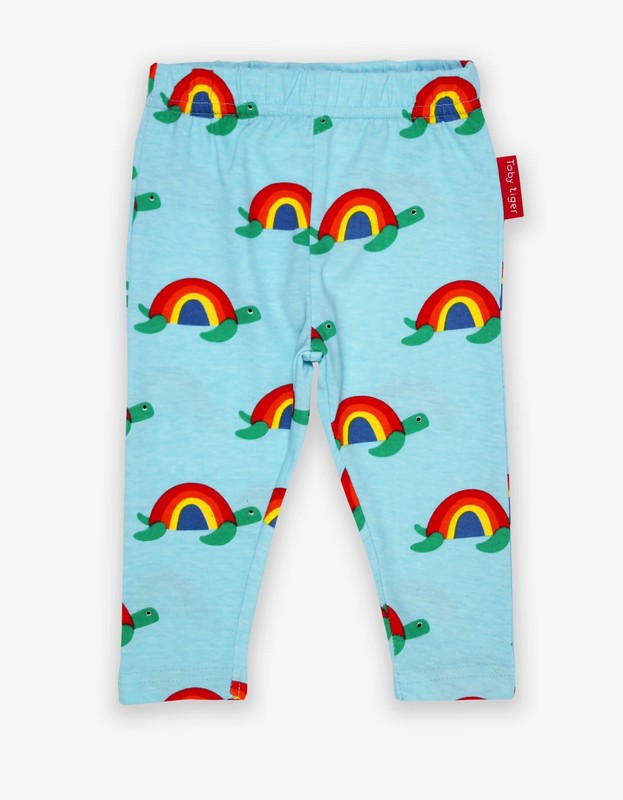 Little legs will love our comfy organic leggings. Super snuggly with an elasticated waistband, our turtle print with rainbow-coloured shells will brighten up any outfit! Try them with one of our bold organic T-shirts.