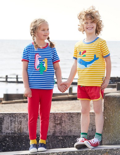 Dive into the magical seas to discover our seahorse applique organic short-sleeve T-shirt. Made from 100% GOTS-certified organic cotton, this nautical-stripe is finished with a bold red trim and neck poppers on our smaller sizes. Explore more of our sea creatures in our ocean-inspired organic clothing