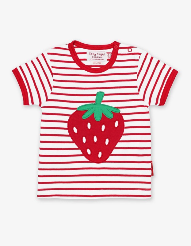 Our soft appliqué summer fruit with perfect seed detailing makes us want to go strawberry picking immediately! These mouth-watering colours made from 100% certified organic cotton make the perfect summer t-shirt, and for really little ones, sizes in 6-12 months and 1-2 years come with poppers on the neckline to make changing as easy as 1, 2, 3. Sweet!