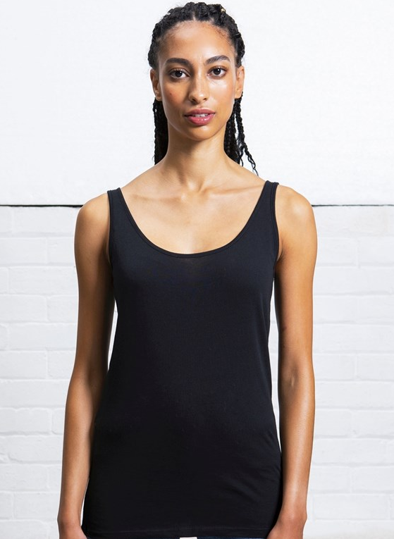 Longer length Tank Vest, Light weight fabric with scooped front and back neck. Great to pair with jeans, leggings or trousers. The lightweight organic fabric makes it perfect sports wear.